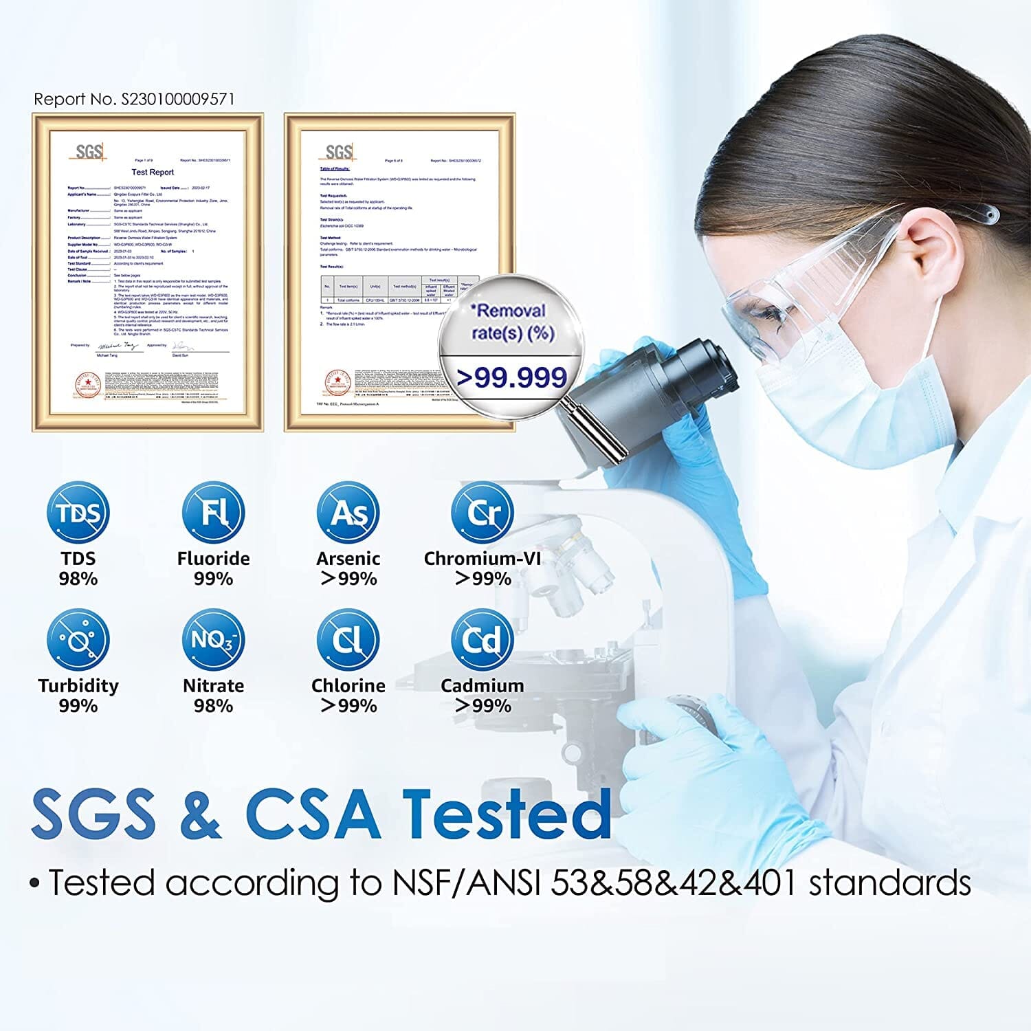 - ✅ Filtration en 8 étapes : Élimine efficacement les TDS, PFOA, PFOS, chlore, fluorure, arsenic, plomb, etc.
