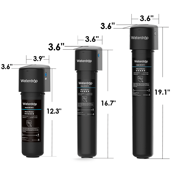 Les TDS, composés principalement de sels inorganiques et d’une faible quantité de matière organique, ne sont pas significativement réduits par ce système. Pour diminuer les TDS, choisissez un système Waterdrop à osmose inverse (RO).